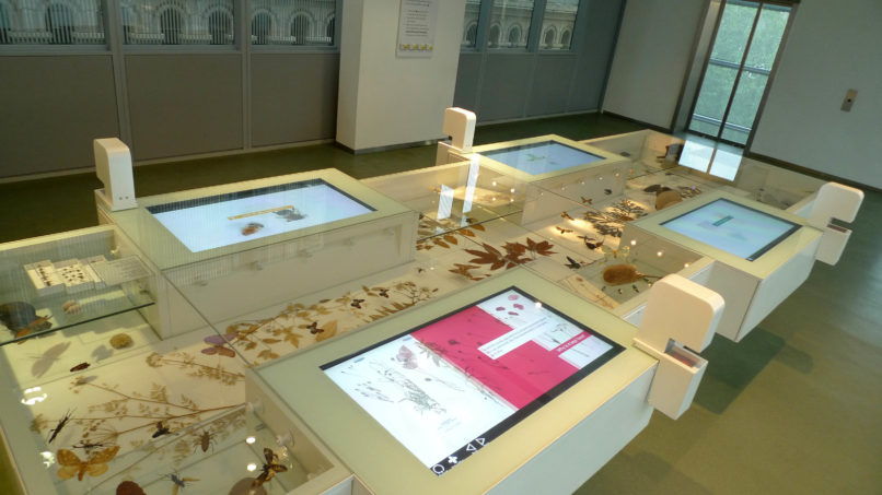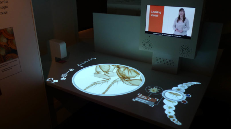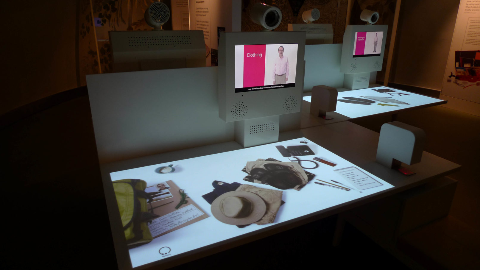 For the Natural History Museum’s Darwin Centre we crafted a digital journey for visitors, immersing them in the world of the Entomologists and Botanists who work there. Visitors assist scientists by interacting with digital work surfaces; they classify butterflies, identify microscopic pond life, prepare for a field trip and help stop the spread of malaria. Animated specimens crawl, scuttle, wriggle, hover and flutter throughout the exhibits, bringing fun and life to the experience. We filmed the scientists who populate the space, prompting and informing the visitor as they pass through. To carry the experience beyond the Museum visitors can send a digital postcard from their field trip collect specimens and highlights via a barcoded card, which they can then access later online.