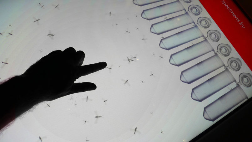 Visitors work together to catch mosquitoes, and then choose the best methods to control the spread of Malaria.